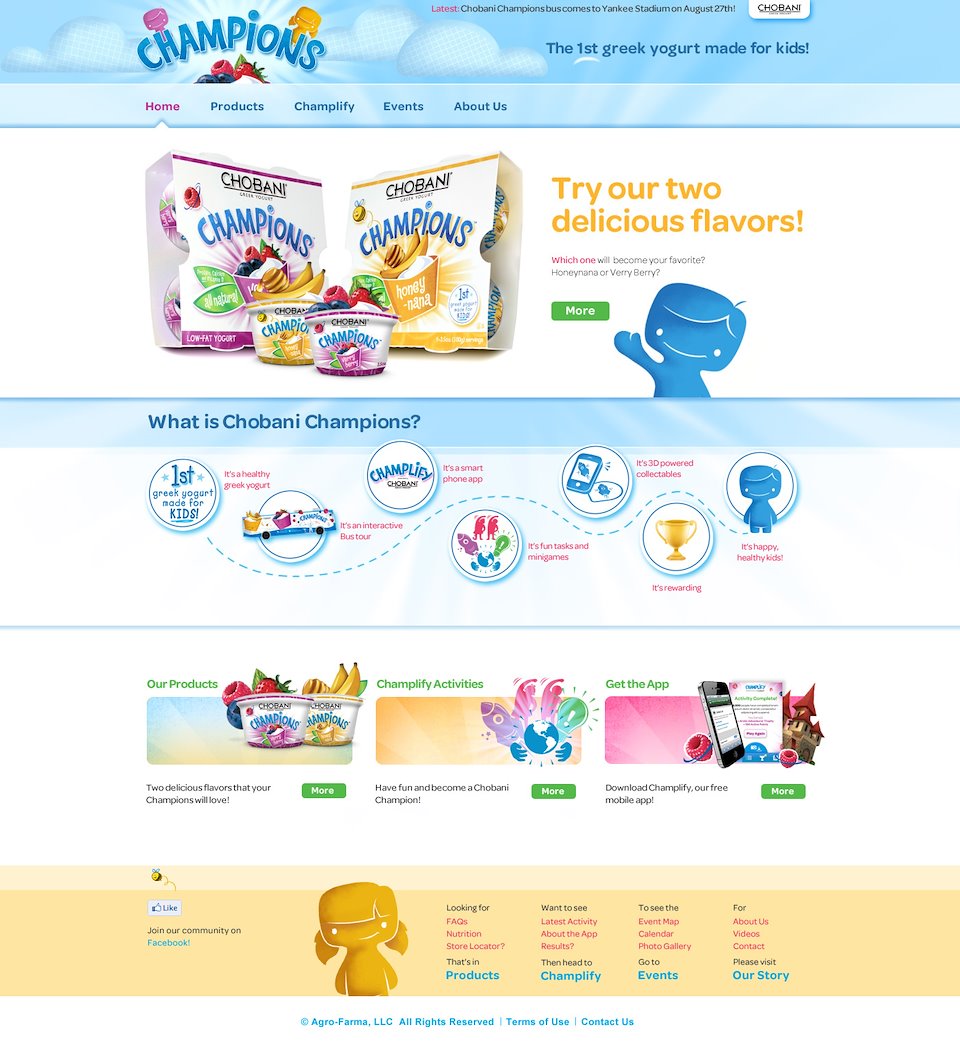 Chobani is a range of Greek yogurt that took over supermarket aisles across the country. A new kids' line, Chobani Champions, was hugely important and needed something extra special to help launch it. We created deep breath a mobile app, a website, a bus tour (including designing the bus), a 2-minute animated video, an augmented reality experience, and new product packaging. I oversaw every step of the project and was thrilled to collaborate with an amazing client.