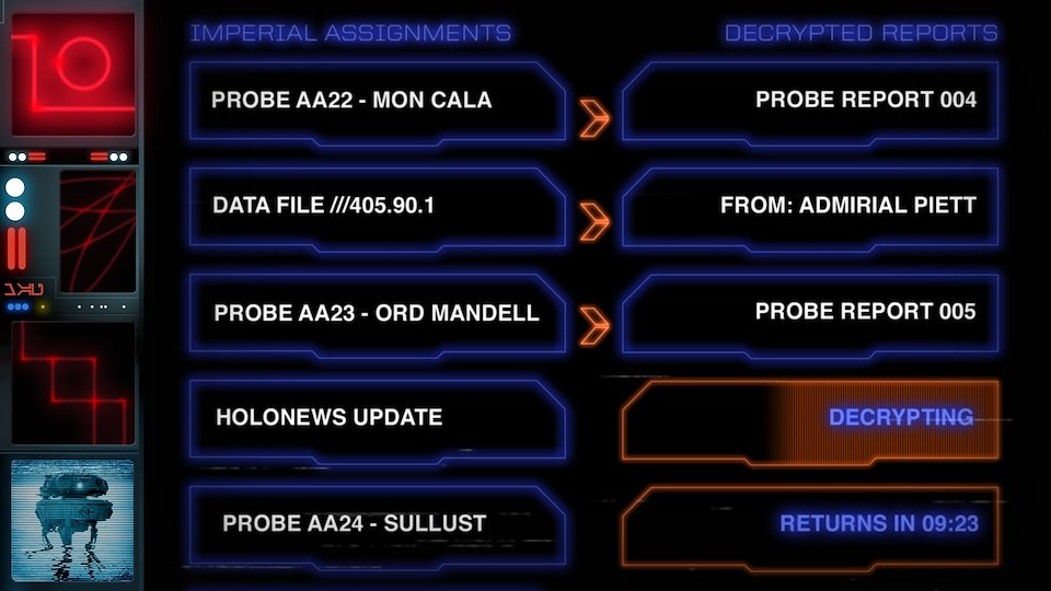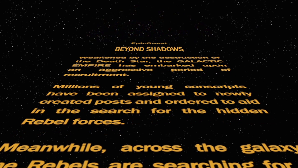 Epicquest was a mobile prototype born out of a VR concept developed inside of ILM (that went on to turn into ILMxLAB). There were a lot of interesting ideas being used; cloud rendering, AR, and AI chat to name a few. I was responsible for the UI/UX as well as transitions and cutscenes, and a longer “Jedi vision” sequence animatic.