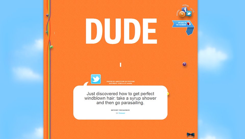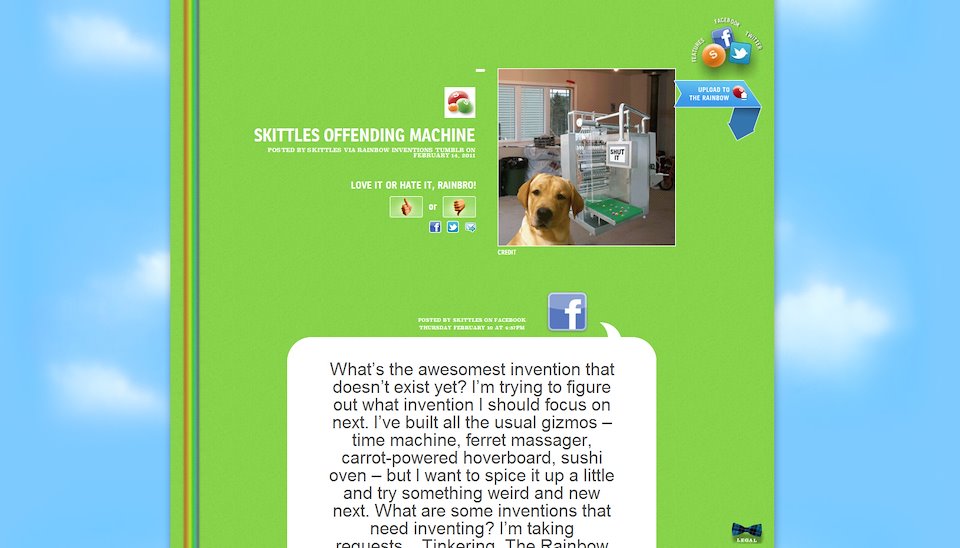 Skittles had the largest social media following in the world when I was tasked with keeping their 10 million fans happy. The “Rainbow” voice was already established, and so a stream of weird stuff was created to support that. Bad photoshopping was required, which I was more than happy to provide.