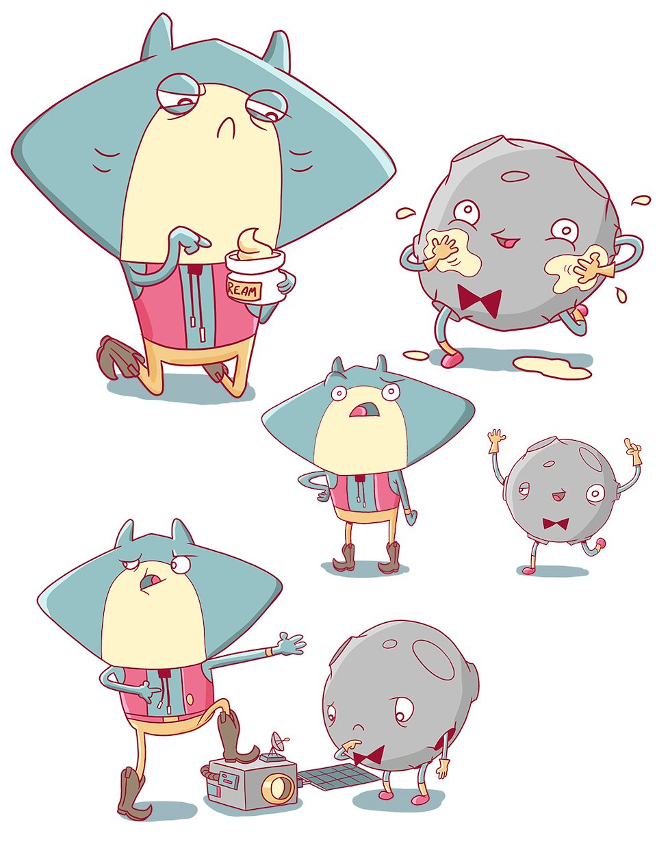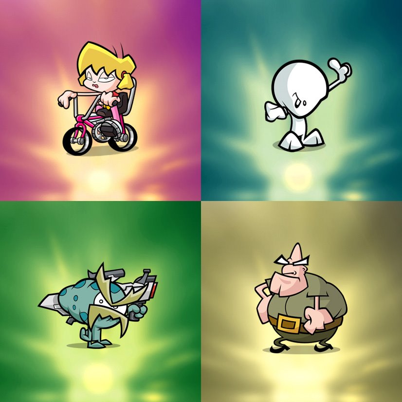 A selection of original characters. I wrote an illustrated a comic in EDGE magazine for over five years, and have done character design for Disney Junior, Cartoon Network, and Amazon Studios.