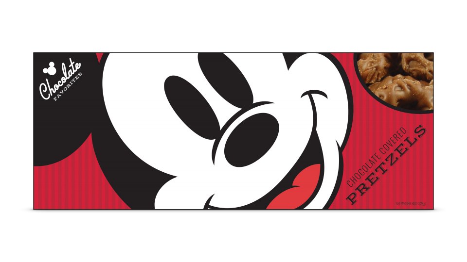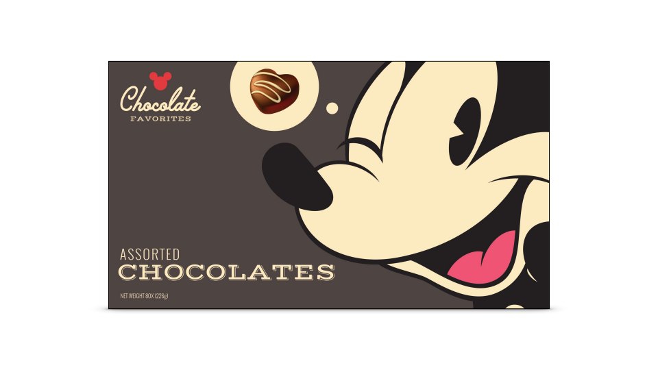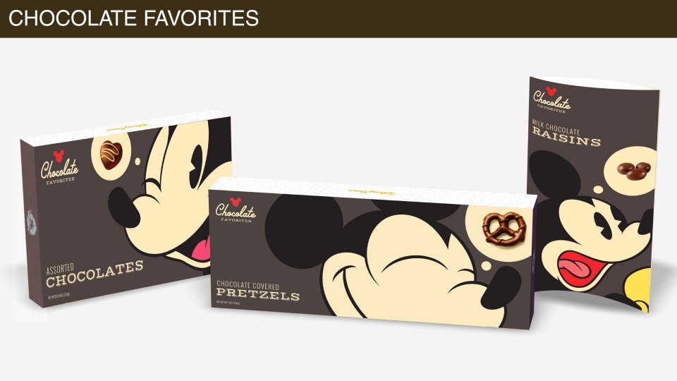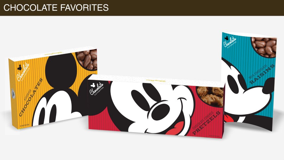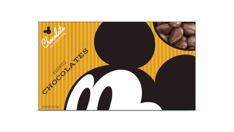 Disney Parks chocolate packaging also needed a refresh and I concepted something bold and simple that put Mickey front and center. It was unbelievable to see these show up inside the park.